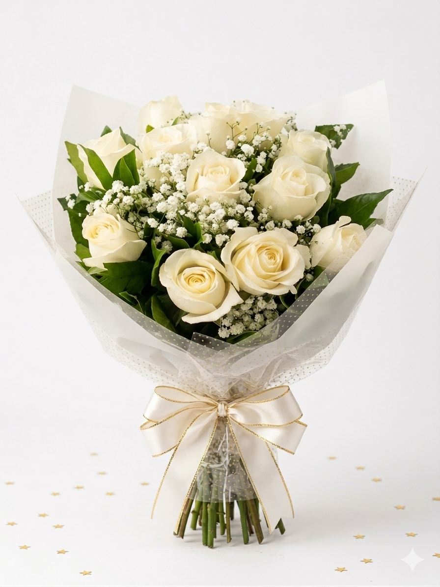 Este buquê reúne 12 rosas brancas cuidadosamente selecionadas, simbolizando paz, pureza e sentimentos verdadeiros. Um presente atemporal, perfeito para demonstrar carinho, admiração ou homenagear com delicadeza.