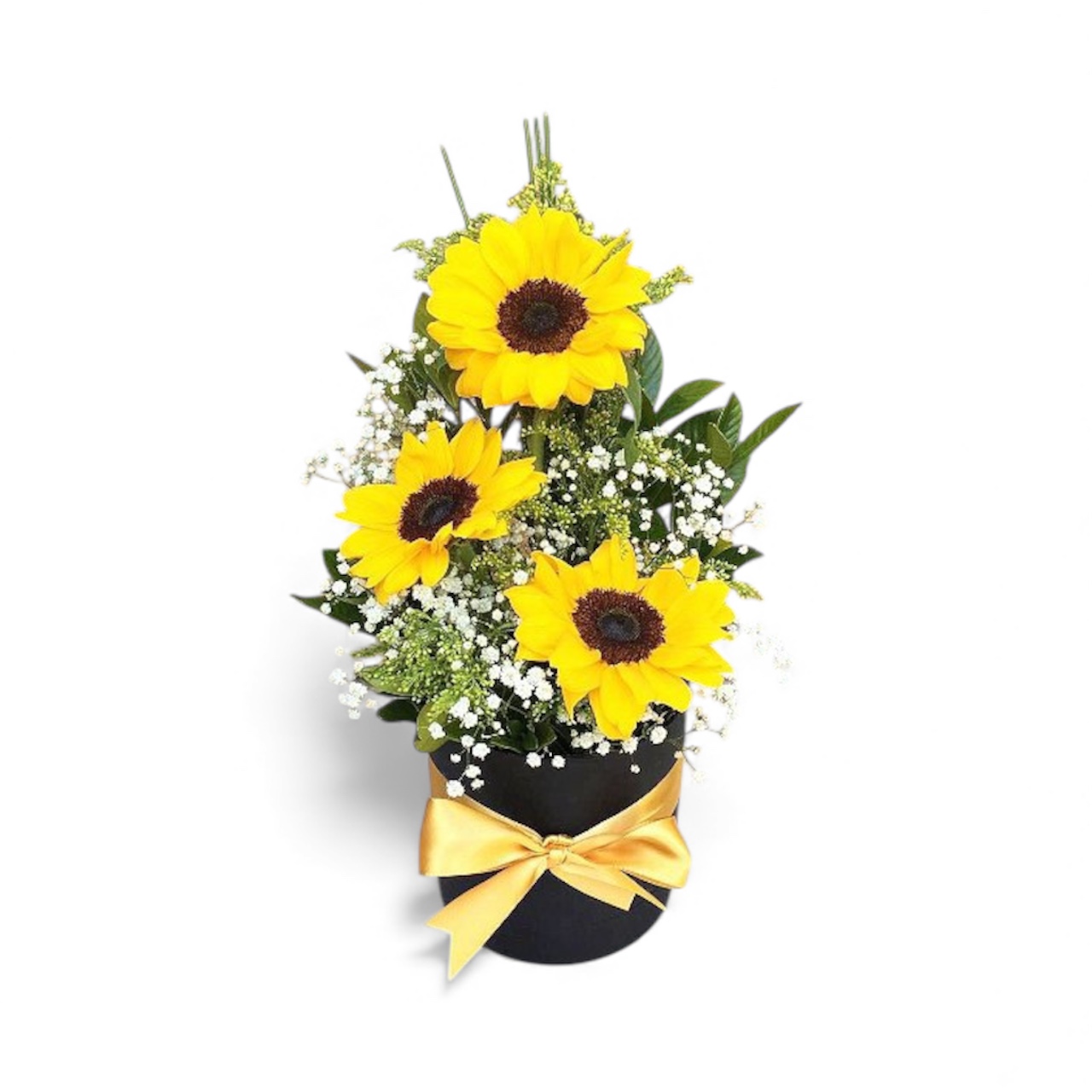 DESCRIÇÃO: Um "Box Trio de Girassóis" provavelmente inclui três girassóis, uma escolha encantadora e vibrante para presentear alguém. Os girassóis são conhecidos por simbolizar a felicidade, vitalidade e amizade, tornando-os uma opção popular para expressar sentimentos positivos. Este tipo de presente geralmente é ideal para celebrar ocasiões especiais ou simplesmente para alegrar o dia de alguém com sua beleza natural e cores vibrantes.
