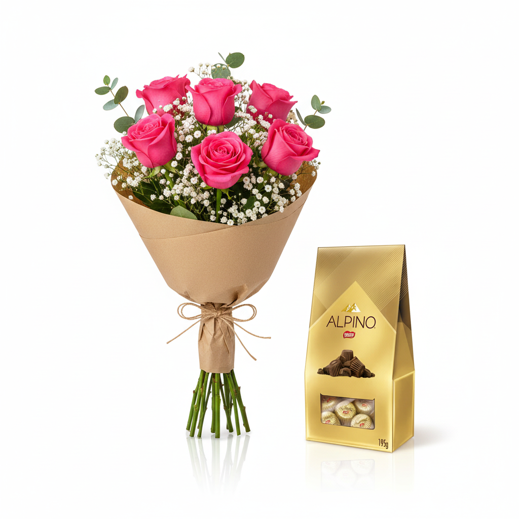A delicadeza das rosas cor-de-rosa encontra o sabor irresistível do chocolate Alpino. Uma combinação criada para emocionar, agradecer e demonstrar todo o seu afeto com elegância e doçura.