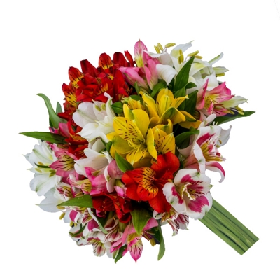 Composição: Mix de astromélias premium em cores variadas (amarelo, vermelho, rosa, branco e mescladas).