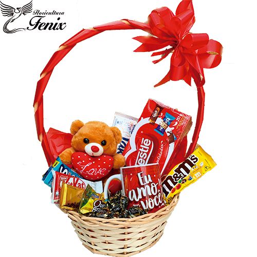 Uma linda e deliciosa cesta de chocolates, para presenter alguém especial.